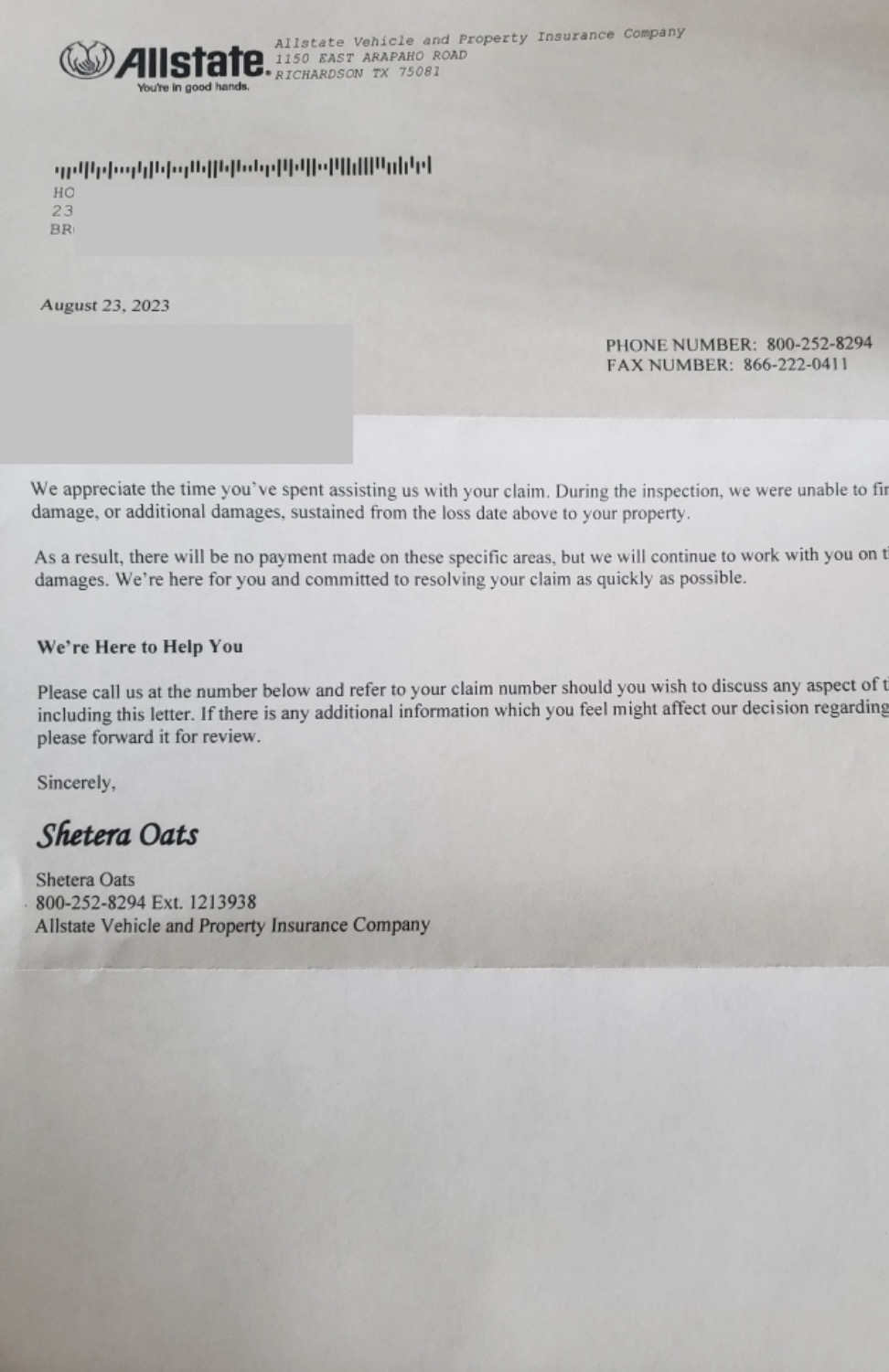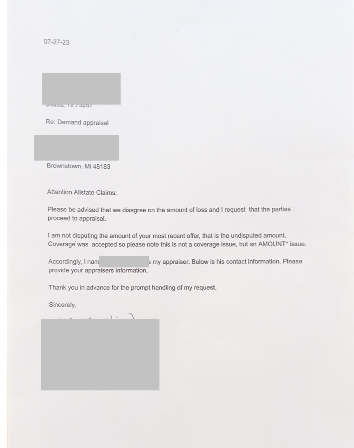 Claim was taken to Appraisal to ensure Proper Coverages