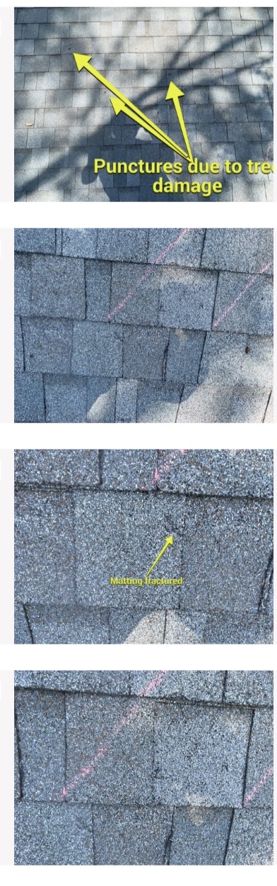 Documented damages on all roof elevations